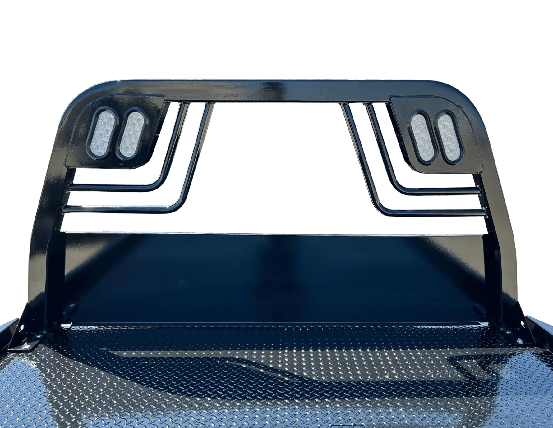 This bed features our new 2023 Wide View Headache Rack, and Stainless Steel Toolboxes.